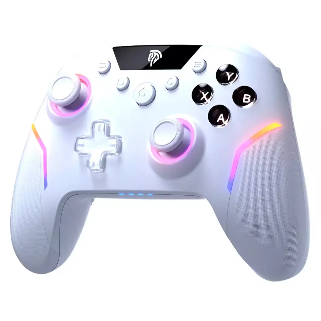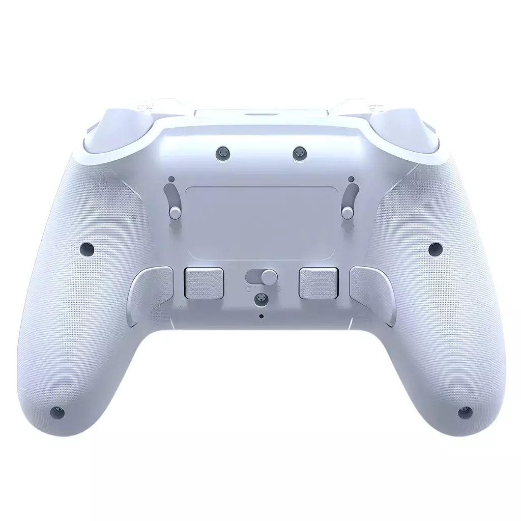 Los botones ABXY, los del hombro y el D-pad son mecánicos (mecha-tactile), entregando una sensación de pulsación más nítida y respuesta rápida. Cuenta además con cuatro botones traseros programables (M1 a M4) para personalizar comandos o macros. El mando también incorpora efectos RGB personalizables y funciones vibratorias en 5 niveles.