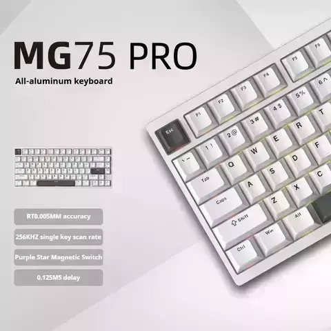El teclado equipa switches magnéticos Purple Star de tipo Hall Effect, con fuerza de activación muy ligera (~35 gf) y recorrido total de 3.5 mm. Gracias al algoritmo G‑Turbo, el teclado ajusta dinámicamente el comportamiento de las pulsaciones para ofrecer una respuesta consistente y sin errores ni fantasmas.